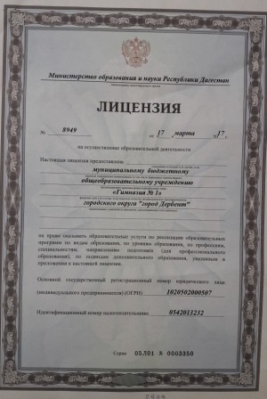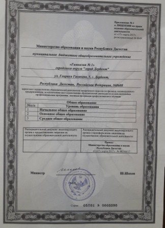 Полное наименование образовательной организации* Муниципальное бюджетное общеобразовательное учреждение городского округа "город Дербент" "Гимназия № 1" им. А.А.Пашаева